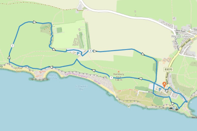 2 – Once you have taken in the Lulworth Cove, head past the Boatshed Cafe until you reach the SW Coast Path. Keep going straight, and you will approach Stair Hole Lookout. Turn right here and keep going to Britwell Drive. Follow Britwell Drive and take the woodland path just after Anchor House. You will pass the car park on your right and rejoin the SW Coast Path.